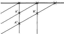 Горизонтальная линия: ряд «теперь». Наклонные линии: Abshattungen тех же «теперь» с точки зрения более позднего «теперь» Вертикальные линии: последовательные Abshattungen того же «теперь». Схема основана на схемах Гуссерля {Husserl Е. Vorlesungen zur Phanomenologie des inneren Zeitbewusstsens Halle, 1928 S 22)