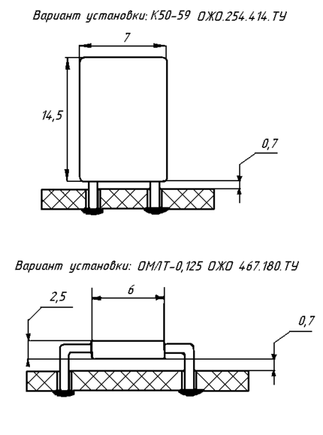 | 4.2 Варианты установки ЭРЭ на печатную плату. В данном разделе оговорены требования к установке ЭРЭ на плату. Рис. 7 | ||||||||||||||||||||||