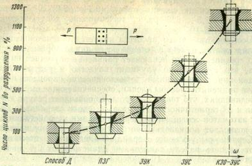 § 4. ВЛИЯНИЕ СПОСОБОВ КЛЕПКИ НА РЕСУРС ЗАКЛЕПОЧНЫХ СОЕДИНЕНИЙ