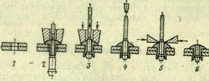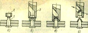 Технология клепки такими заклепками и применяемый на Некоторых операциях и переходах инструмент несколько отличаются от рассмотренных ранее.