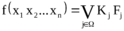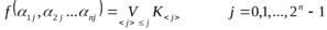 Множество номеров <j> содержит все n-разрядные двоичные номера и все их собственные части, полученные заменой любой позиции n-разрядного номера символом “-” (прочерк), что говорит об отсутствии соответствующей переменной в минтерме Fj. Таким образом, в записи (1) предусмотрены все минтермы ранга не выше n.