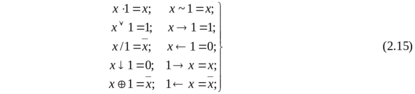 ); f(x,0); f(0,x); f(x,1); f(1,x), предусматриваемых при суперпозиции. Ниже приводится перечень соответствующих формул для всех элементарных ФАЛ, доказательство их предлагается выполнить самостоятельно: