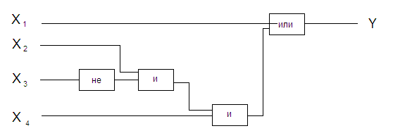 - составление переключательной схемы и логической сети из логических элементов (не, или, и), соответствующие каждой окончательной ДНФ, полученных в результате упрощения;