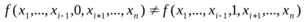 в противном случае аргумент хi называется фиктивным, а функция f фиктивно зависит(по существу – не зависит) от аргумента хi.
