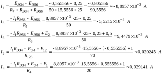 Найдем токи всех ветвей путем эквивалентных преобразований: