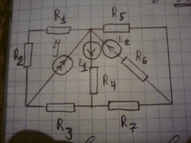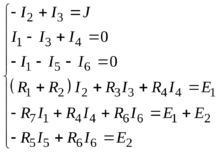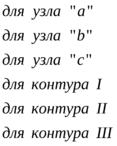Выберем направления токов в ветвях произвольным образом, обозначим узлы цепи: