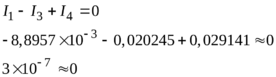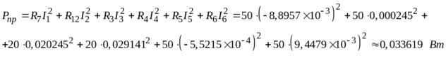 Проверим выполнение законов Кирхгофа и соблюдения баланса мощности