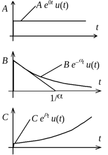 То, что в число примеров вошли функции, описывающие затухающие колебания, и гармонические функции объясняется тем, что согласно формуле Эйлера cos x = 1/2 (ejx + e–jx). В данном пособии мы ограничимся рассмотрением экспоненциальных воздействий.