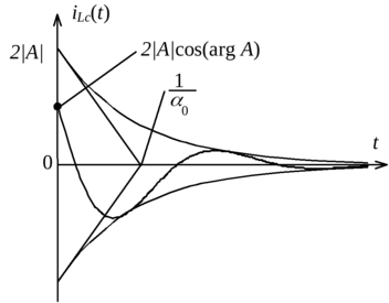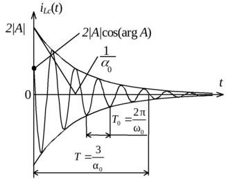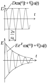 , а цепи с такими СЧ принято называть колебательными. Собственная реакция в данном случае является суммой двух комплексно-сопряженных затухающих экспонент: