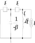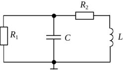Рассмотрим методику нахождения параметров реактивностей на примере цепи, изображенной на рис. 2.1 при условии, что цепь должна обладать свойствами высокодобротного резонансного контура, имеющего заданную резонансную частоту f0 и добротность q0 5. Сначала определим методику оценки сопротивлений цепи R1 и R2. Во-первых, нужно выяснить из физических соображений, каким образом R1 и R2 качественно влияют на добротность цепи. Для этого в схеме рис. 2.1 обнуляем внешние источники, что приводит к цепи, изображенной на рис. 4.8.