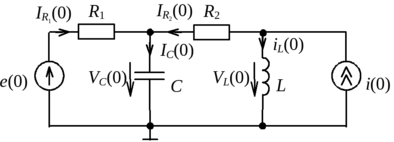 Независимыми начальными условиями называют начальные значения переменных состояния, т.е. напряжения на емкостях и токи через индуктивности цепи в нулевой момент времени. Главным является то, что они не могут изменяться скачком при скачкообразных воздействиях на цепь, поэтому они и являются независимыми. Необходимость пересчета этих начальных условий объясняется тем, что для решения ДУ «вход – выход» необходимо знать начальные значения искомой выходной переменной и ее производных, которые в общем случае зависят от внешних воздействий и могут изменяться скачком. При этом начальные условия необходимо найти в момент времени сразу после скачка t = 0+.