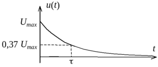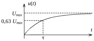Произведите экспериментальное определение переходной характеристики цепи – реакции на единичное скачкообразное воздействие. Для этого установите параметры импульсного сигнала: длительность импульса и = 1000 мкс, период повторения Т = 4000 мкс, амплитуда Uи = 1 В (контроль параметров осуществляется по осциллографу). Полярность импульсов, снимаемых с генератора, - отрицательная. Установите такую развертку осциллографа, чтобы наблюдать на экране однократное ступенчатое воздействие. Подключите осциллограф к выходу исследуемой цепи, наблюдайте переходную характеристику. Развертку подберите так, чтобы характеристика была достаточно растянутой. Изобразите осциллограмму переходной характеристики в отчете. Найдите по ней постоянную времени цепи. Примерные графики переходных характеристик приведены на рис. 9.2, там же показано, как определить постоянную времени .