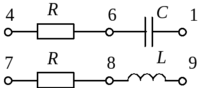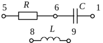 Элементы последовательного колебательного контура с указанием номеров клемм макета изображены на рис. 8.1. Из этих элементов следует собирать одну из схем контура (см. рис. 8.2; конкретную схему вам укажет преподаватель). Изобразите полученную вами схему в отчете, проставьте номера клемм и используйте этот подготовленный материал при сборке общей схемы экспериментальной установки. Вставьте плату в разъем лабораторного столика, включите источник питания. Соберите схему рис. 7.3.