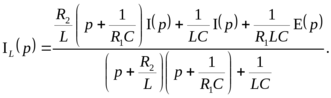 Для получения ДУ «вход – выход» можно воспользоваться таким приемом: провести преобразование Лапласа над узловыми уравнениями, проделать алгебраические преобразования, а затем сделать обратное преобразование Лапласа, вернувшись во временную область к исходному ДУ «вход – выход». Но сначала нужно выразить искомую реакцию (выход) через узловые напряжения. В нашем примере
