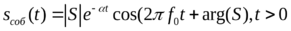 где |S| и arg S представляют собой амплитуду и начальную фазу собственной реакции цепи, а параметры α и f0 называются показателем (декрементом) затухания и резонансной частотой контура соответственно.