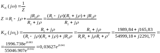 При f = f0 сопротивление ZL заменяется на jρ а ZC на –jρ, и тогда KIC(jω) приобретает вид: