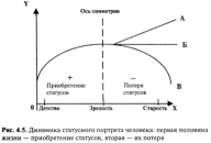 Мы можем заключить следующее: кривая, выражающая накопление статусов в 1-й половине жизни, симметрична кривой, выражающей потери социальных статусов во 2-й (рис. 4.5).