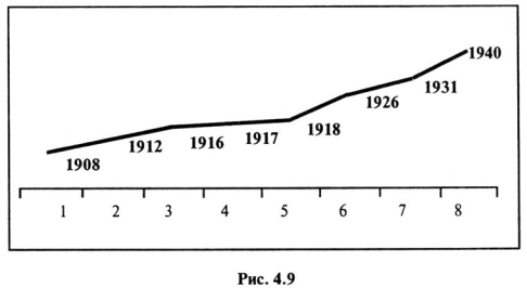 См. таблицу (табл. 4.1) и график творческой карьеры ху дожника (рис. 4.9).