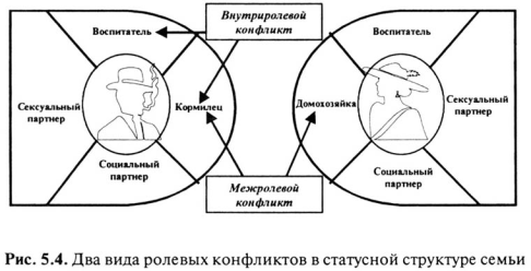 Межролевого конфликта, возникающего, например, между ролью домохозяйки, выполняемой женой, и ролью кормильца, которую неспособен выполнить муж.