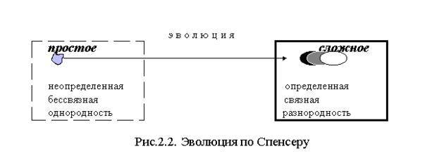 Г. Спенсер подходит к проблеме раскрытия сущности эволюции, рассматривая ее как восходящее движение, как переход от простого к сложному и прежде всего противопоставляя эволюцию процессу разложения, распада, и делает это весьма обстоятельно. Первым делом, будучи последовательным позитивистом, он указывает на наличие закономерностей, единых для всех форм материи - от косной, неживой до социальной. Общая же суть перемен, происходящих с материей во всех ее разновидностях и формах, заключается, по Спенсеру, в следующем.