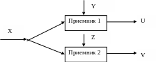 По каналу связи, состоящему из передатчика, ретранслятора и приемника, передают два сигнала: единицу и ноль. За счет воздействия помех сигналы могут искажаться. На участке "передатчик-ретранслятор" единица проходит без искажений с вероятностью р1 и переходит в ноль с вероятностью (1-p1), ноль проходит о вероятностью q1 и переходит в единицу с вероятностью (1-q1). На участке "ретранслятор-приемник" указанные вероятности равны соответственно: p2, (1-p2), q2, (1-q2). Найти вероятность того, что комбинация"10", посланная передатчиком, будет принята приемником как "10".