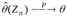 (Zn) параметра θ называется состоятельной, если она сходится по вероятности к θ, т.е. Р