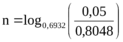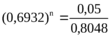 0,05 = (0,8048)(0,6932)n