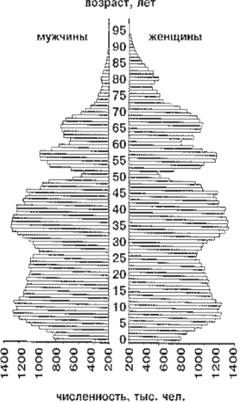 В статистике населения также выделяют группы по полу и возрасту. В 1998 г. в общей численности населения мужчины в России составляли 47%, женщины - 53%.