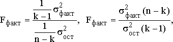 остроив уравнение регрессии, проводят оценку его надежности. Оценка надежности параметров уравнения проводится на основании анализа случайной компоненты. Это делается посредством критерия Фишера (F). Фактический уровень (Fфакт) сравнивается с теоретическим (табличным) значением:
