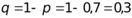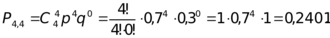 Пример. Предполагается произвести 4 выстрела по мишени. Вероятность попадания при каждом выстреле считается известной и равной 0,7. Найти вероятность того, что