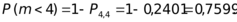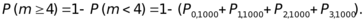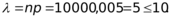 Искать каждое из слагаемых этой суммы и затем выполнять суммирование – такое решение не представляется рациональным из-за большого числа слагаемых и потому, что таблица функции Пуассона не дает искомых значений с требуемой в данном случае точностью. Воспользуемся переходом к противоположному событию: