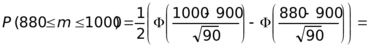 Пример. Каждая из 1000 деталей партии стандартна с вероятностью 0,9. Найти вероятность того, что число стандартных деталей этой партии будет не меньше 880.