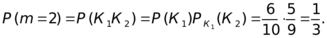б) Пусть m – число красных шаров среди двух извлеченных. Тогда искомой является вероятность