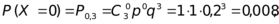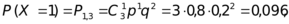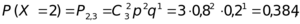 Пример. Стрелок стреляет в мишень 3 раза. Вероятность попадания при каждом выстреле равна 0,8. Составить закон распределения случайной величины Х – числа попаданий в мишень.