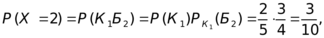 Пример. В коробке – 3 белых шара и 2 красных. Шары извлекаются последовательно до появления белого шара. Составить закон распределения случайной величины Х – числа извлеченных шаров.