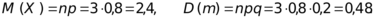 Очевидно, что использование формул последней теоремы упрощает и ускоряет вычисление математического ожидания и дисперсии биномиально распределенной случайной величины по сравнению с применением исходных определений для М(Х) и