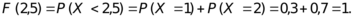 (Или, другими словами, так как все значения данной случайной величины менее 2,5, то событие (Х < 2,5) является достоверным, а потому его вероятность равна 1.) Аналогично, при любом значении переменной х, которое более или равно 2, будем иметь