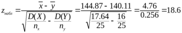 Итак, по двум независимым выборкам пх = 25 и пу = 25 извлеченным из нормальных генеральных совокупностей Х и Y найдены выборочные средние