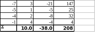 | yi | 12,4 | 14,7 | 18,2 | 21,1 | 23,2 |