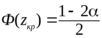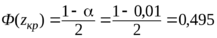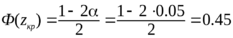 По условию, конкурирующая гипотеза имеет вид Н1: M(X)>M(Y), поэтому критическая область правосторонняя. Критическое значения критерия z найдем из равенства