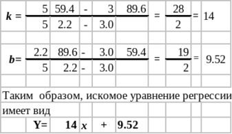 Решение: Параметры k и b , а так же выборочный коэффициент корреляции найдем по таким формулам: