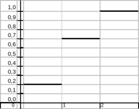 при 0< x ≤ 1, F(x) = Р(Х < 1)= 0,1