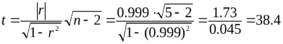 Для уровня значимости = 0,1 и числа степеней свободы равным n–2 = 3 по таблице в учебнике, найдем критическое значение критерия Стьюдента