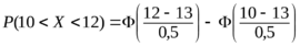 Ф(–1,25) = – Ф(1,25) = –0,39435 и Ф(2,5) = 0,49379, тогда
