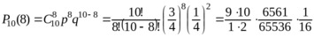 Наивероятнейшее число удачных опытов равно 8. Поскольку количество испытаний невелико (n = 10), то для нахождения вероятности того, что событие А появится точно k = 8 раз воспользуемся формулой Бернулли: