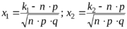 Определим аргументы интегральной функции Лапласа х1 и х2: