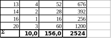 Вычислим необходимые суммы, пользуясь следующей расчетной таблицей: