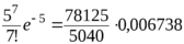 Задача 20Б. Ткач обслуживает 1000 веретен. Вероятность обрыва нитки на одном из веретен в течении одной минуты равна 0,005. Найти вероятность того, что в течении одно минуты обрыв произойдет на 7 веретенах.