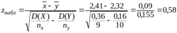 zкр = 2,58. Так как zнабл < zкр , то нулевая гипотеза о равенстве средних подтверждается. Другими словами, выборочные средние различаются не значимо.