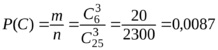 в) Пусть событие С состоит в том, что все выбранные изделия бракованные. Количество возможных способов взять 3 изделия из 25-ти равно